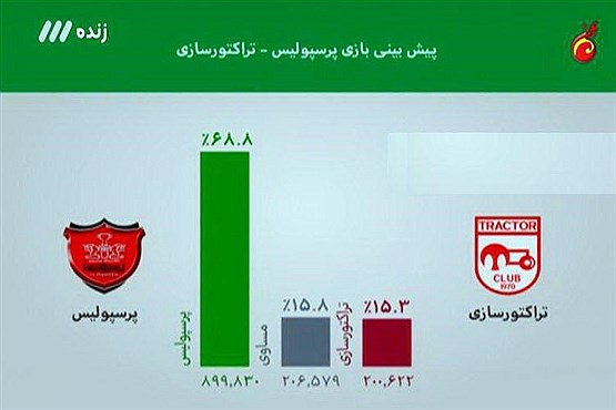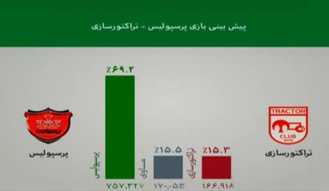 در پایان با شرکت یک میلیون و ۶۸۱ هزار نفر در مسابقه پیش بینی، ۶۸،۸ درصد برد پرسپولیس، ۱۵،۸ درصد مساوی و ۱۵،۳ درصد برد تراکتورسازی را در مسابقه حساس یکشنبه هفته آینده پیش بینی کردند.