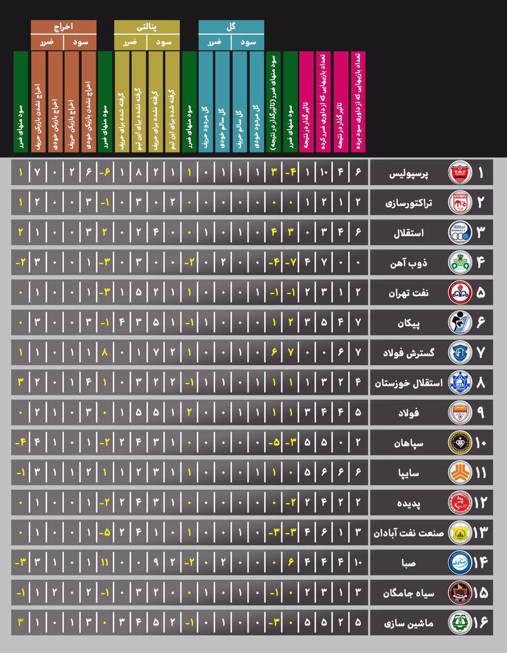 آماری از سود یا ضرر بردن تیمهای لیگ برتری از داوری پخش شد که نشان داد استقلال تهران، گسترش فولاد و صبا بیشترین منفعت را از داوری بردند و تیمهای اصفهانیِ سپاهان و ذوبآهن ضرر بیشتری دیدند.
