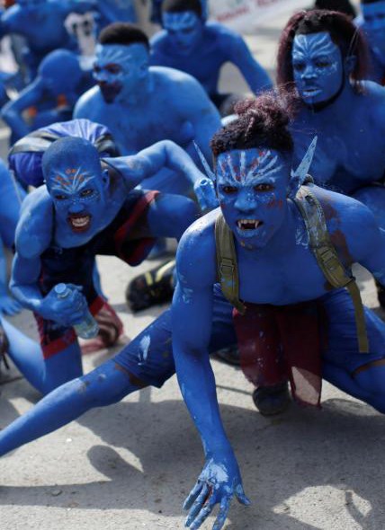 عدهای از شرکت کنندگان کارناوال شهر جکمل هائیتی خود را به شکل شخصیتهای فیلم سینمایی آواتار درآوردهاند